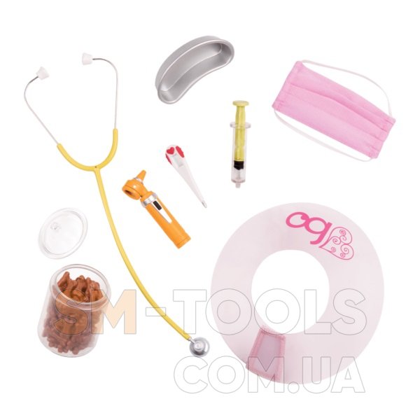 Кукла Our Generation Палома - Ветеринар. У нее красивые каштановые волосы, карие глаза и светлая кожа. Она одета в специальную одежду и удобные туфли. В наборе есть все необходимые аксессуары для увлекательной игры: инструменты ветеринара, стетоскоп, ошейник для щенков или котят, отоскоп с рабочим светом для проверки ушей ее пациента и многое другое! Кукла-ветеринар прекрасно дополнит коллекцию игрушек от Our Generation, а также отлично сочетается с наборами аксессуаров бренда.