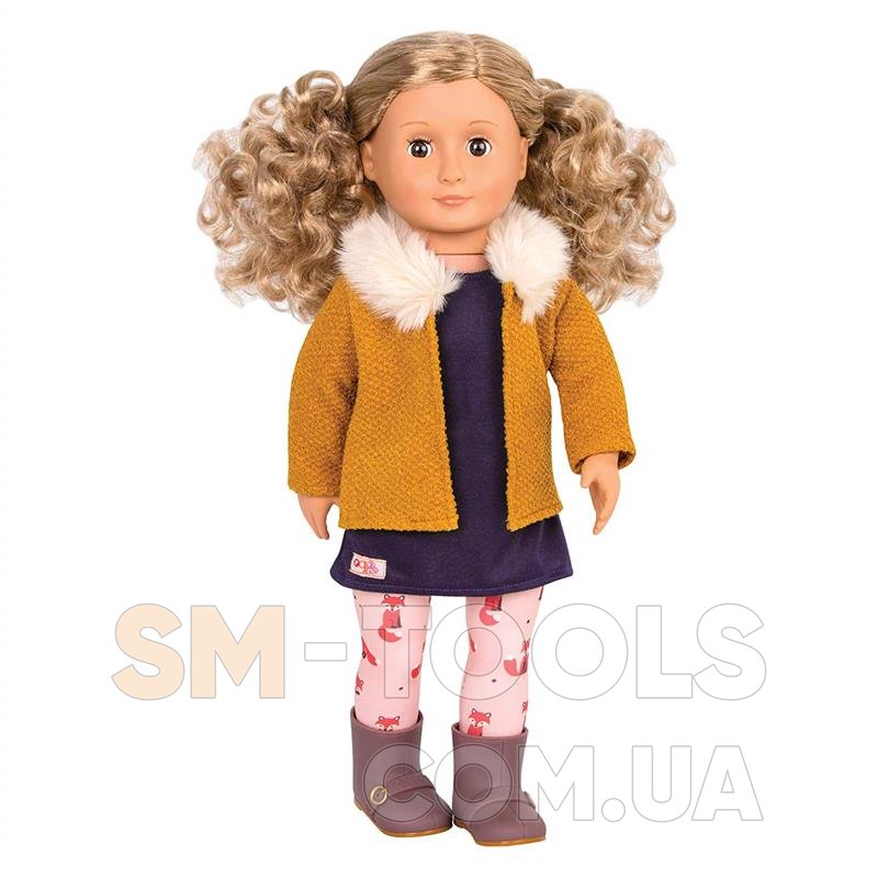 Флоренс представляет коллекцию невероятных кукол Our Generation. Она выглядит как настоящая девочка. У нее светлые кучерявые волосы, которые завязаны в симпатичные хвостики. Девочки с удовольствием могут расчесывать их и укладывать в прически. Флоренс одета в светло-коричневое пальто с меховым воротником, сиреневое платье, розовые колготки и сапожки. Кукла совместима со всеми аксессуарами бренда.