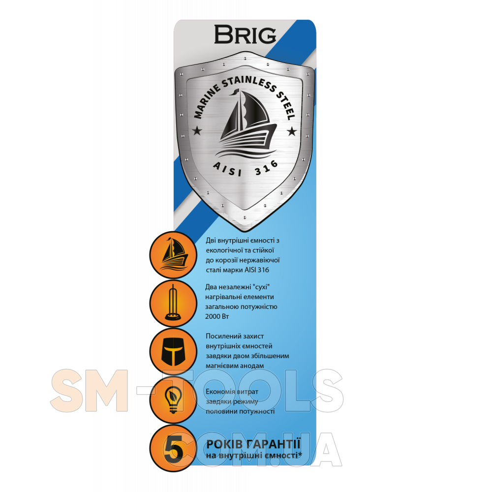 WILLER IV100DR Brig - плоский электрический водонагреватель с внутренним баком из нержавеющей стали AISI316 (отличается более высокой антикоррозионной стойкостью в сравнении с распространённой AISI304). Минимальная глубина изделия (295мм с учётом монтажных планок) позволит установить бойлер даже в стеснённых пространством условиях. В бойлер WILLER IV100DR Brig установлены два независимых сухих нагревательных элемента мощностью 1000 Вт каждый. Нагревательные элементы расположены в специальных защитных кожухах (фланцах) и непосредственно не контактируют с водой, что значительно увеличивает их долговечность и экономичность.