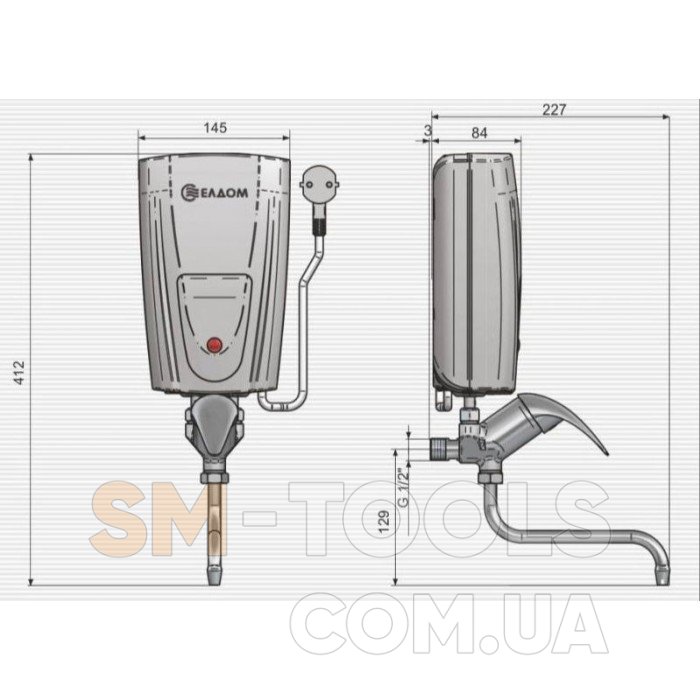 Водонагреватель Eldom 6,5 kw E72 смеситель