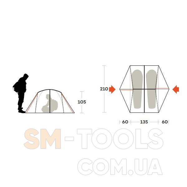 Внутренняя палатка (Д х Ш х В): 210 х 135 х 105 см