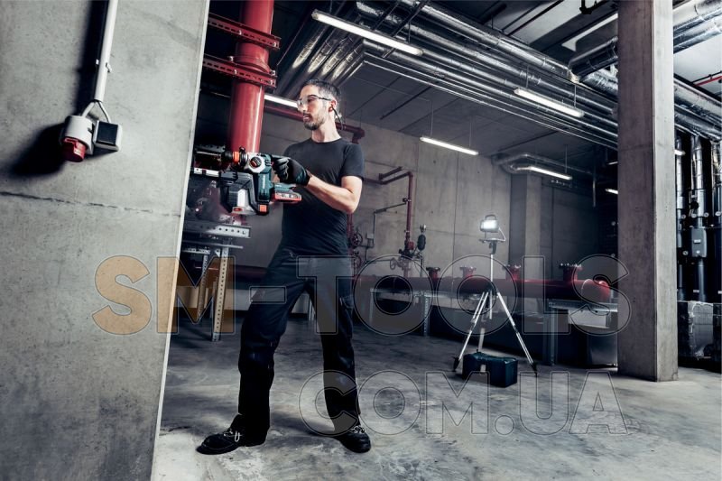 - Оборудована собственным мотором, который питается от перфоратора.Применяется с аккумуляторным перфоратором KHA 18 LTX BL 24 Quick.