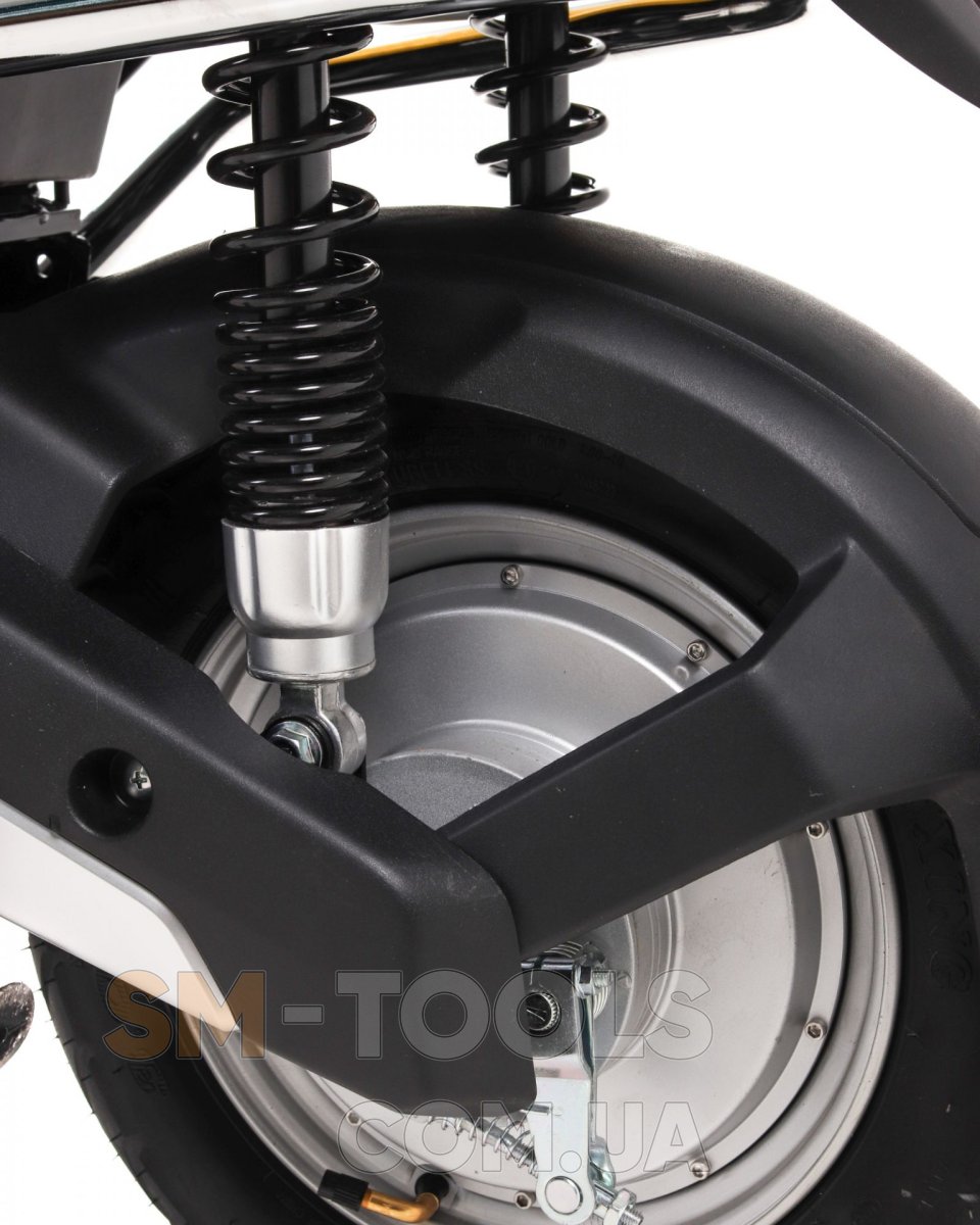 Акумулятор великої місткості гарантує тривалий термін служби й економну роботу. Потужний електродвигун на 800 Вт дозволяє електроскутеру розганятися до 45 км/год. А головне те, що електроскутер E3 не використовує бензин і шкідливі мастильні речовини, тому він буде працювати практично безшумно, і що дійсно важливо, такий екологічний транспорт не буде забруднювати навколишнє середовище викидами СО2.