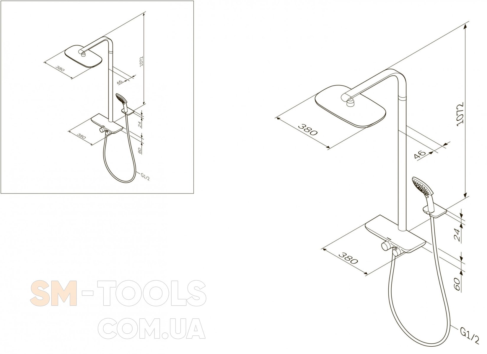 Длина душевой штанги 1072