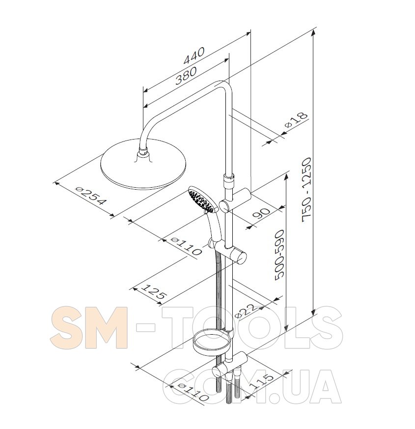 Премиальные размеры в массовом сегменте: увеличенный диаметр душевых леек (верхний душ 250 мм и ручной душ 110 мм) позволит ощутить преимущества тропического душа даже в стандартной ванной, тогда как увеличенная длина шланга 1750 мм обеспечит свободу движений во время принятия душа.