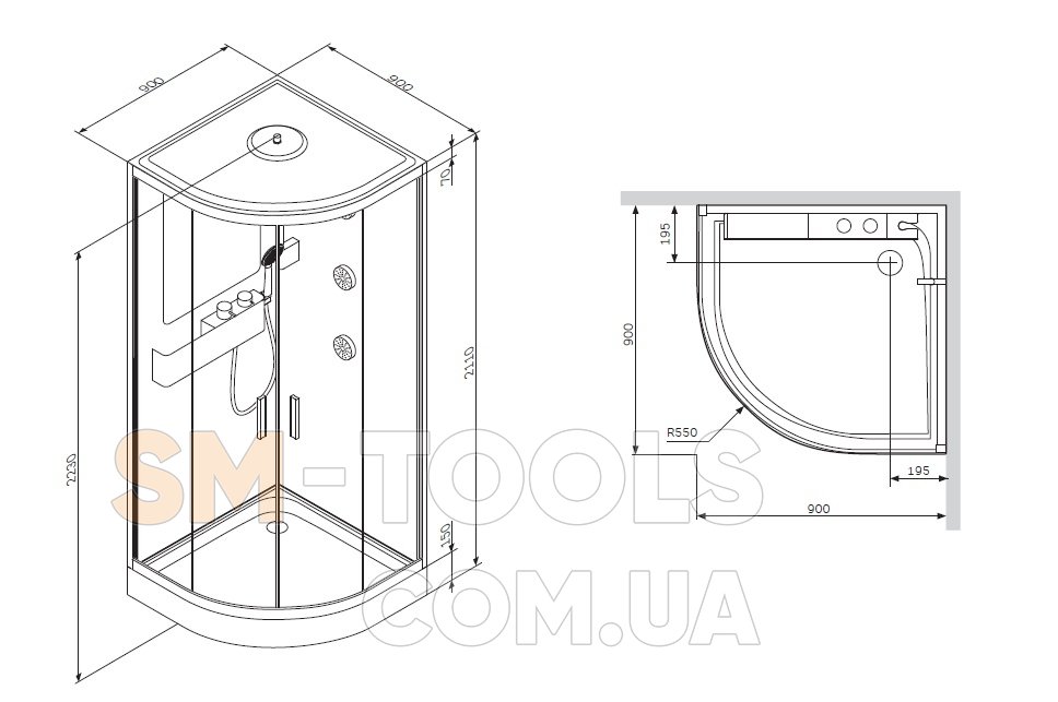 Увеличенная внутренняя площадь: при компактном размере 900х900 мм полезная площадь аналогична кабинам 1000х1000 мм, что позволит без помех разместить кабину даже в небольшой ванной и при этом не чувствовать себя стесненным.