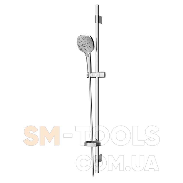 Продуманные детали для удобства использования: душевая штанга 1100 мм, душевой силиконовый шланг 1750 мм (с защитой от перекручивания), ручной душ 120 мм, мыльница Ø 110 мм, регулируемые по высоте держатели душевой штанги, регулируемый в трех плоскостях держатель ручного душа.