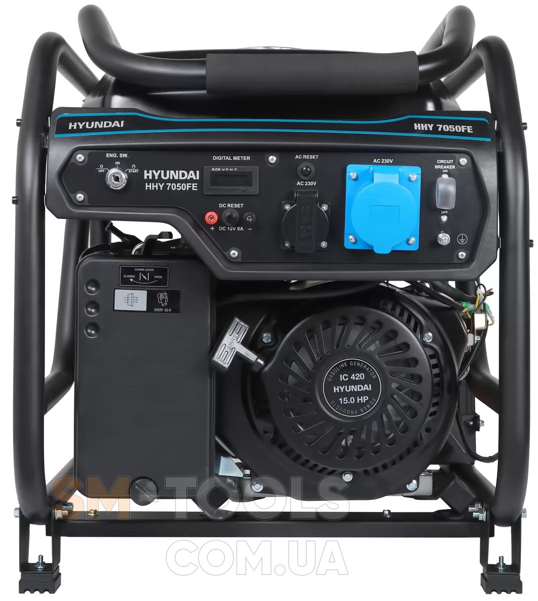 Вместительный, стальной бензобак - резервуар для бензина изготовлен из высокопрочного металла. Он вмещает 25 литров топлива, а этого достаточно для 20 часов генерирования электроэнергии при средней нагрузке.