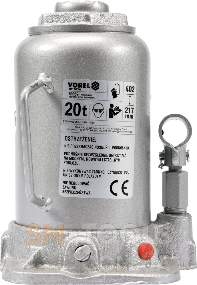 Описание Домкрат гидравлический бутылочный VOREL 80082 20т: