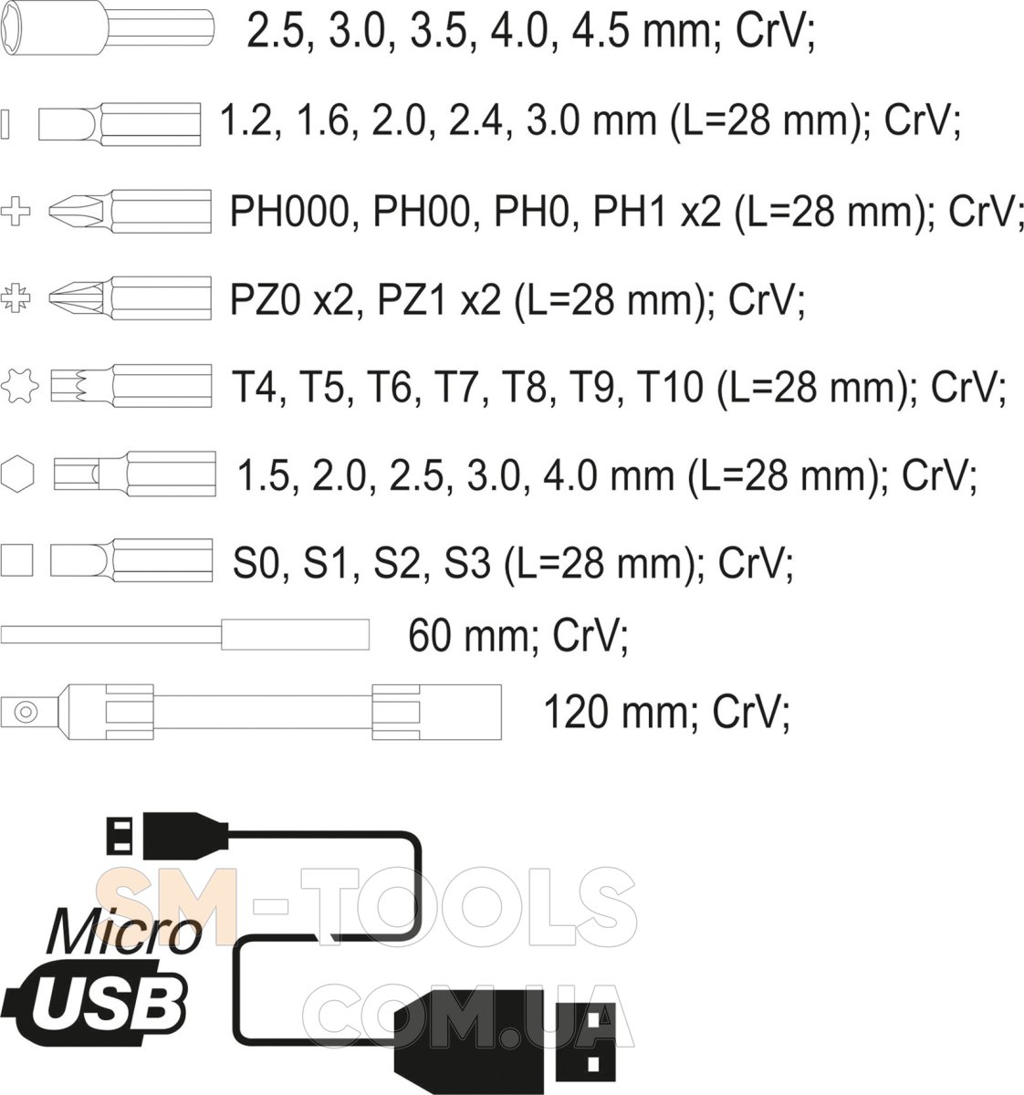 Отвертка аккумуляторная с набором бит YATO YT-27930