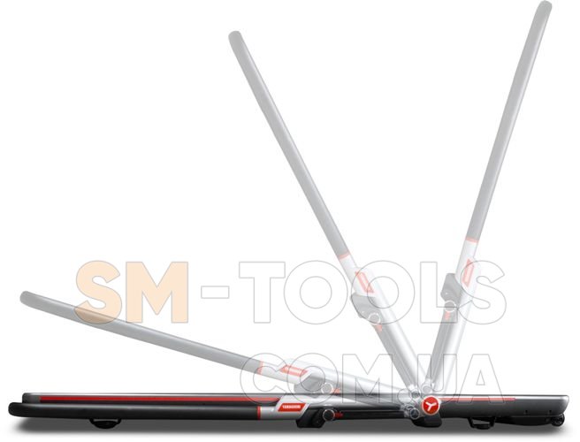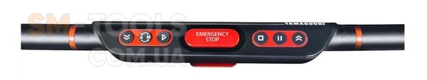 Беговая дорожка Yamaguchi Runway PRO-X оснащена пневматическим поручнем с элементами управления, в числе которых кнопка немедленной остановки движения EMERGENCY STOP.