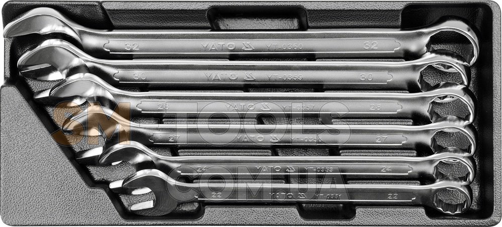 YT-5532 - набор комбинированных гаечных ключей (6 предметов) в пластиковом ложементе под 1/3 ящика инструментальной тележки YATO.