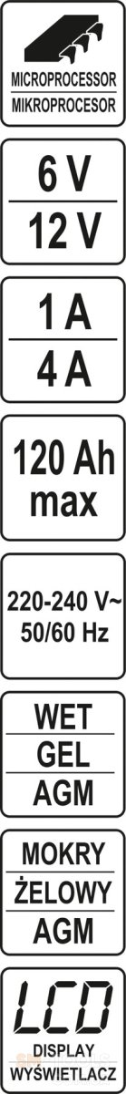 Характеристики Интеллектуальное зарядное устройство YATO YT-83033: