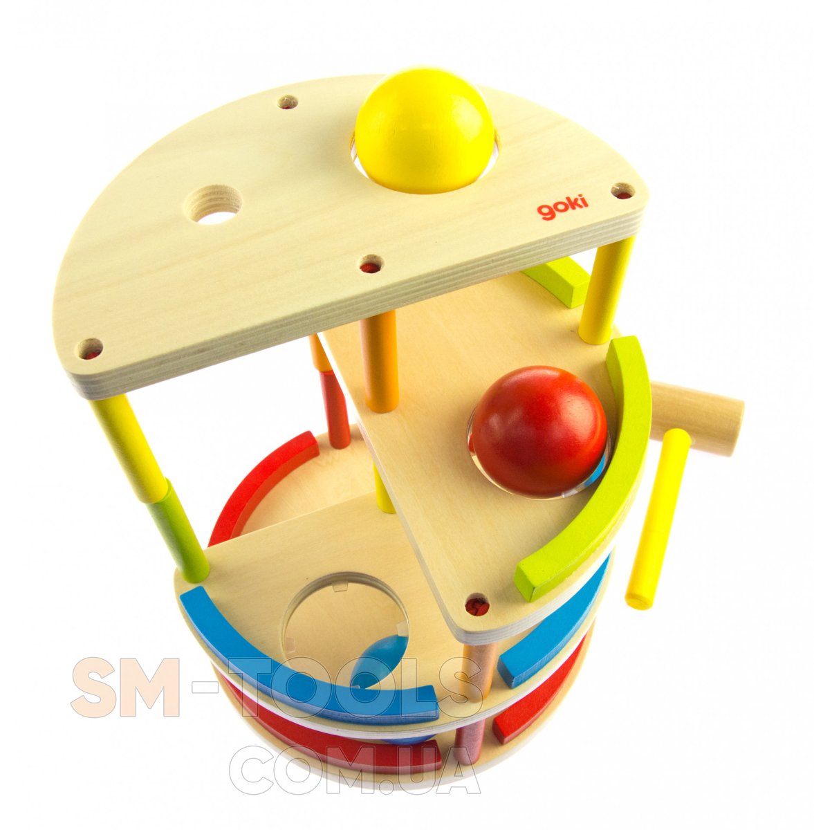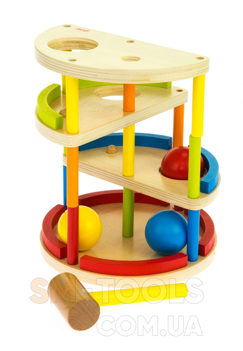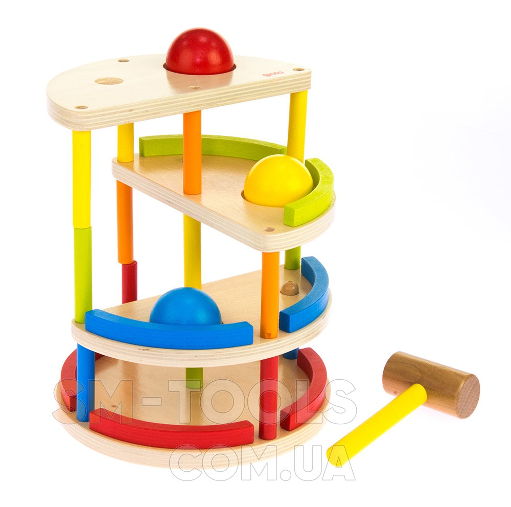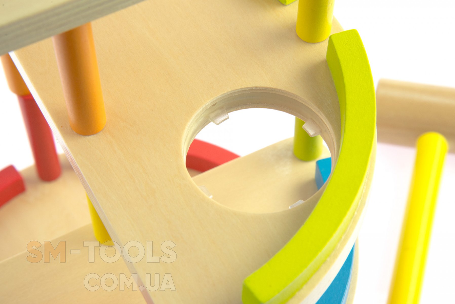Розвиваюча гра «Трекбол з молотком» зацікавить дитину не на один день. Іграшка розвиває логіку, координацію рухів, послідовність дій та розуміння причинно-наслідкових зв’язків. Комбінація яскравих та природніх відтінків набору розвиватиме в дитини кольорове сприйняття. Іграшка виконана з натурального дерева, тому не є токсичною. «Трекбол з молотком» буде цікава малюкам з 1-го року.