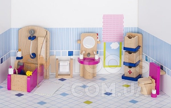 Яскравий набір меблів для ванної кімнати від німецького виробника іграшок goki. Набір відрізняється різноманіттям деталей, особливо дрібних, які будуть чудово розвивати моторику рук. «Меблі для ванної кімнати» зроблять гру більш реалістичною, розширять світогляд дівчат, познайомлять із предметами побуту, привчать до хазяйновитості. Дівчата зможуть проявити свою творчість, розставляючи: душову кабіну, ванну, раковину із дзеркалом, туалет, сушарку та багато дрібних аксесуарів. Німецький бренд goki пропонує також різноманітні набори меблів для вітальні, дитячої, кухні, садові меблі тощо. Для дітей від 3-х років.