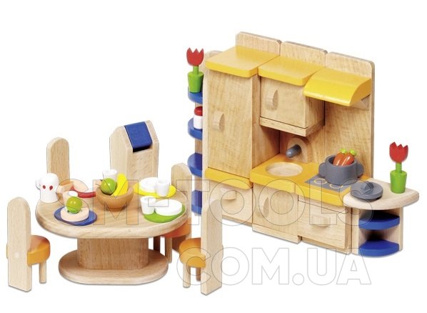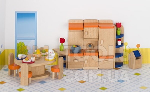 Набір «Меблі для кухні» від німецького бренду goki допоможе дівчатам оздобити їх ляльковий будиночок. Іграшкові меблі зроблять гру більш реалістичною, розширять світогляд дівчат, познайомлять із предметами побуту. Дівчата зможуть проявити свої дизайнерські здібності, розставляючи: шафи, тумбочки, тарілки, чашки, чайник, фрукти у відповідні місця. Німецький виробник іграшок goki пропонує також різноманітні набори меблів для вітальні, дитячої, душової, садові меблі тощо. Для дітей від 3-х років.
