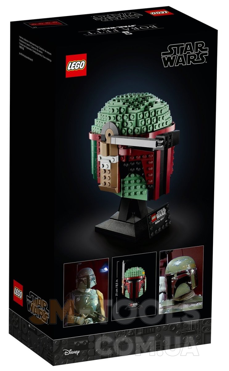 Використовуйте входить в набір демонстраційну підставку з інформаційної табличкою, щоб встановити цю колекційну модель «Шолом Боби Фетта» LEGO будинку, в офісі або будь-якому іншому місці нашої галактики. Якщо ви хочете знову випробувати свою майстерність конструювання, зверніть увагу на інші набори серії LEGO Star Wars: «Шолом штурмовика» (75276) та «Дроид DO» (75278).