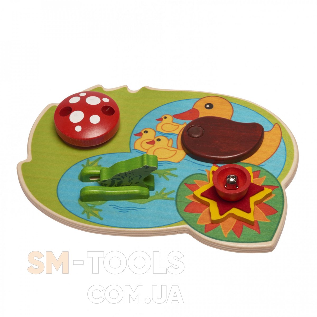 Игровой набор немецкого производителя игрушек nic в виде пруда будет способствовать развитию полного спектра полезных навыков и умений у детей. Красочные цвета, четкие изображения, подвижные детали, небольшая погремушка надолго увлекут ребенка. На круглой основе, размером 29 х 20 см, изготовленной из безопасного и приятного на ощупь материала – древесины, изображен пруд и его «жителей».