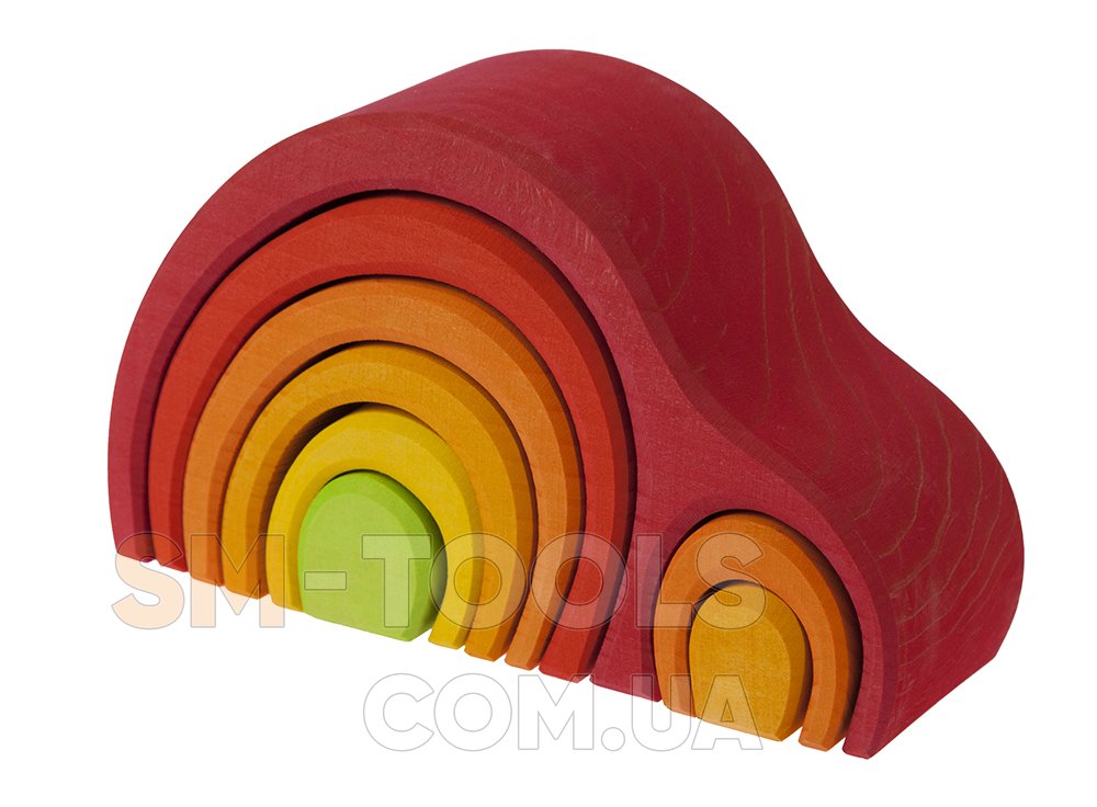 Казки про хобітів та їх будиночки з’являються у реальному світі завдяки дерев’яному конструктору німецького виробника іграшок nic. Конструктор - це будиночок, який виконаний у жовто-гарячій гамі кольорів. Натуральне дерево, з якого вироблена іграшка, вкрите червоними і помаранчевими фарбами. Кольорове покриття – матове, нетоксичне і підкреслює структуру дерева. Цікавий і екологічний набір складається із 8 деталей, які надійно запаковані у прозору поліетиленову плівку. Елементи відрізняються один від одного за розміром і кольором. Висота зібраного будиночка складає 12 см. Глибина кожної деталі – 7 см.