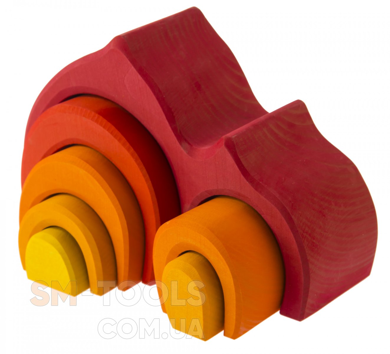 Деревянный конструктор в цветах заката немецкого производителя игрушек nic. Интересный и экологичный набор состоит из 7 деталей, которые плотно упакованы в прозрачную полиэтиленовую пленку. Элементы отличаются друг от друга по размеру и цвету. Высота собранного домика составляет 14 см. Конструктор изготовлен из натуральной древесины, покрытой насыщенными красками на водной основе. Материалы нетоксичны и безопасны для здоровья.