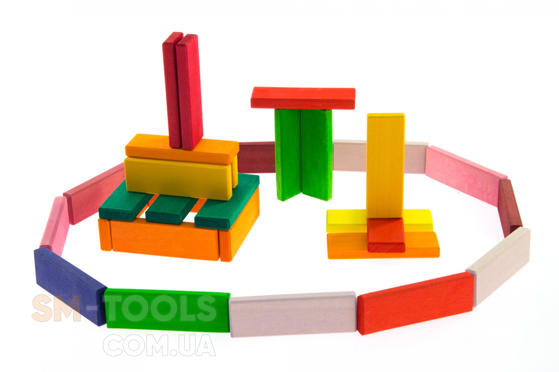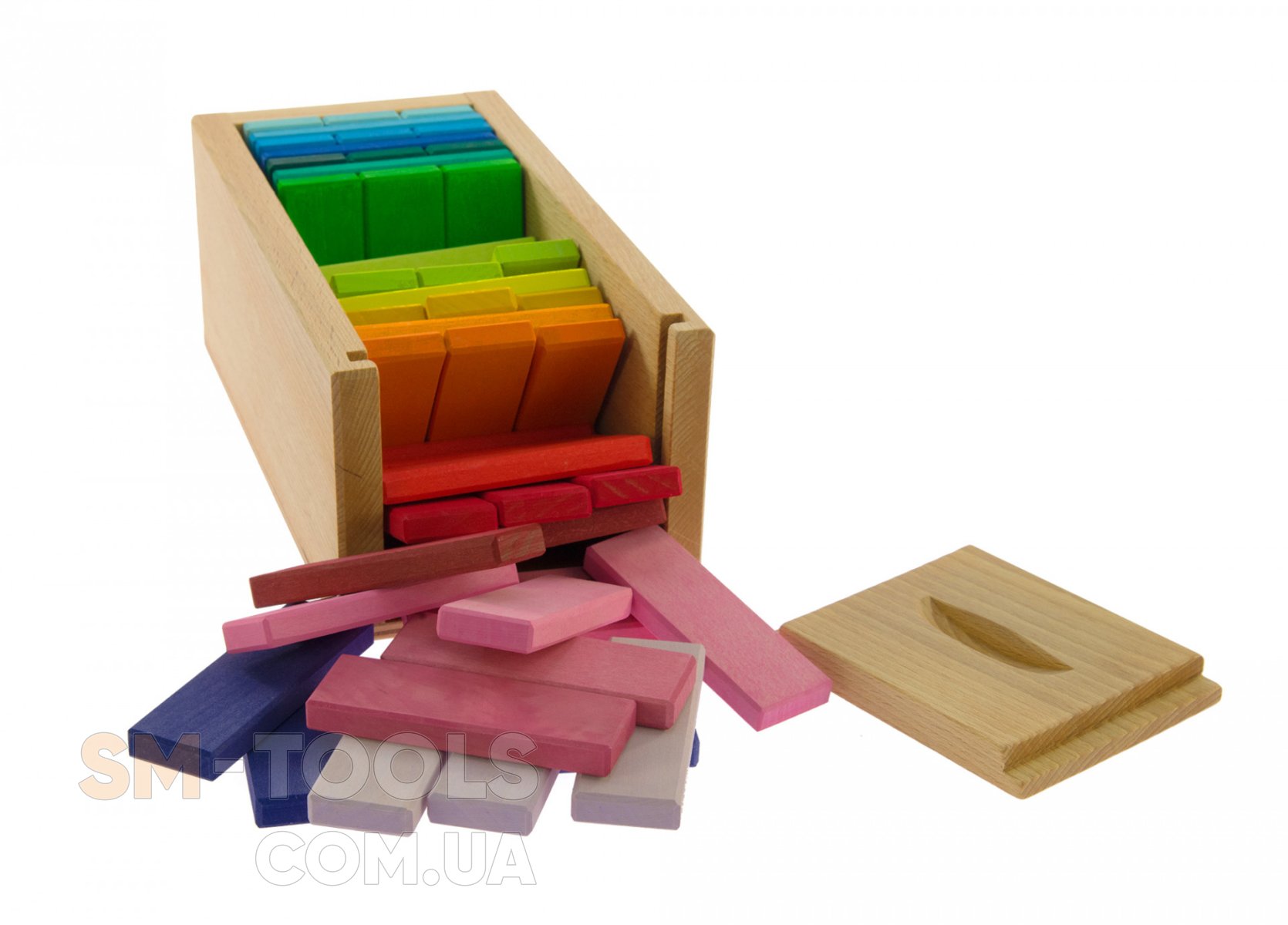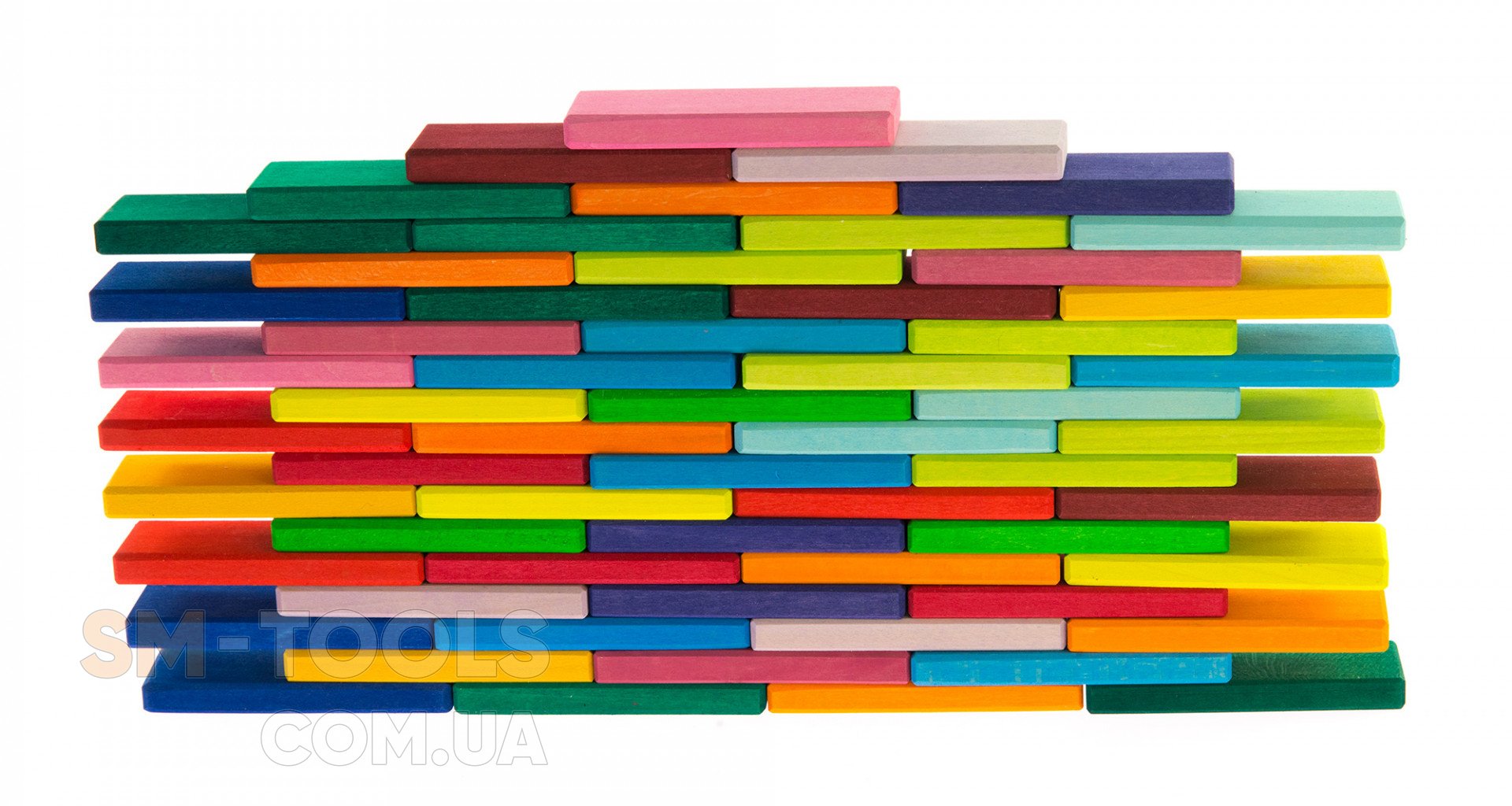 Весь спектр райдуги в руках дитини навчить її розрізняти не тільки кольори, а і їх відтінки. А за допомогою класичних будівельних блоків однакових розмірів можна майструвати різноманітні вежі, конструкції, райдугу або все те, що побажає дитина. Також цей набір можна використати у якості всесвітньовідомої гри «Дженга».