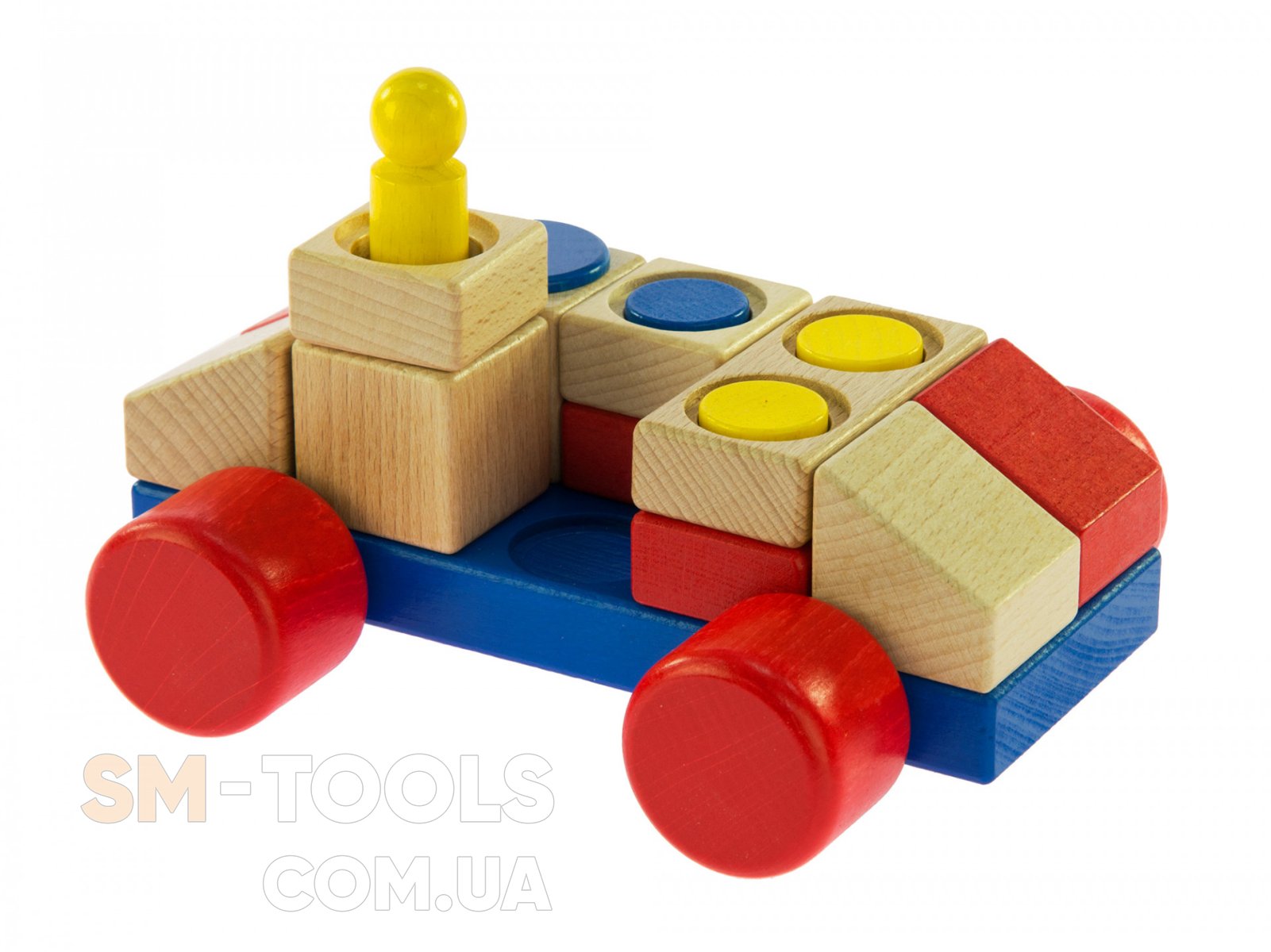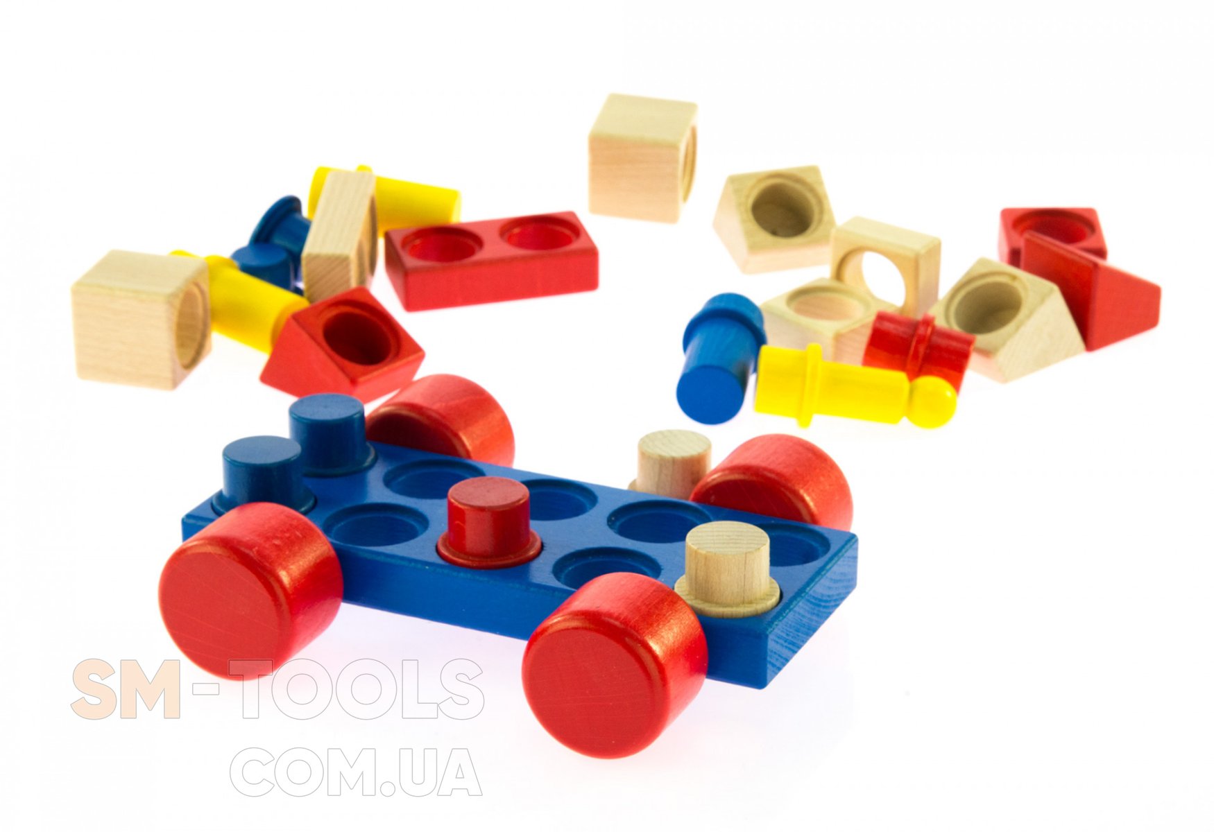 Деревянный конструктор содержит множество деталей, которые будут развивать мелкую моторику и цветовосприятие. Различные варианты строительства автомобилей будут развивать логическое мышление, внимание, координацию движений, фантазию и усидчивость.