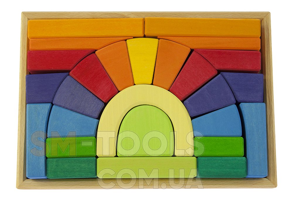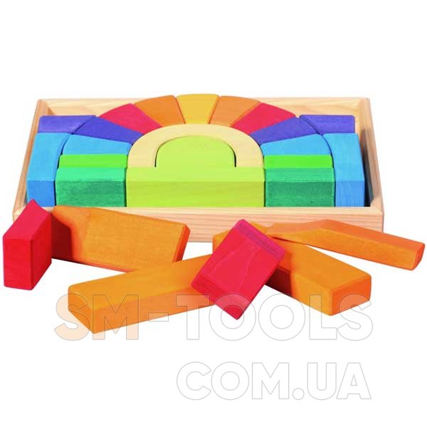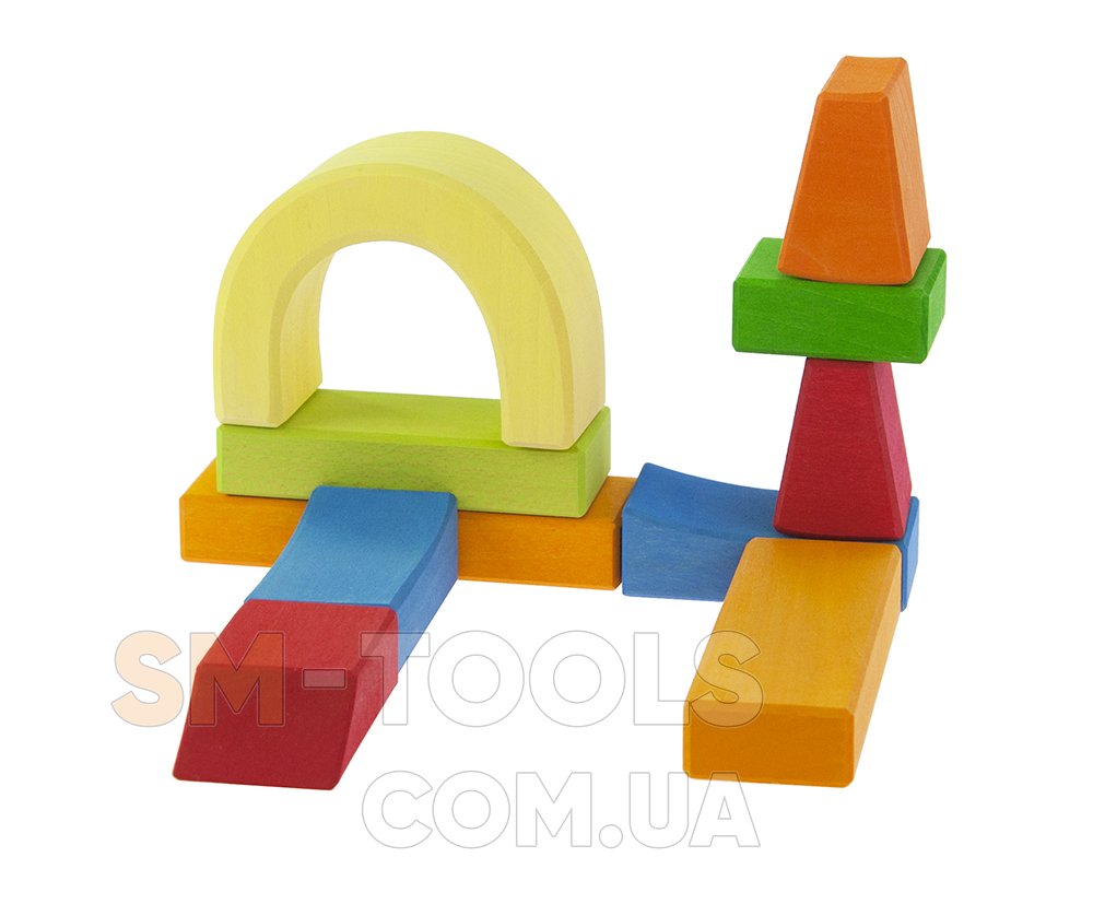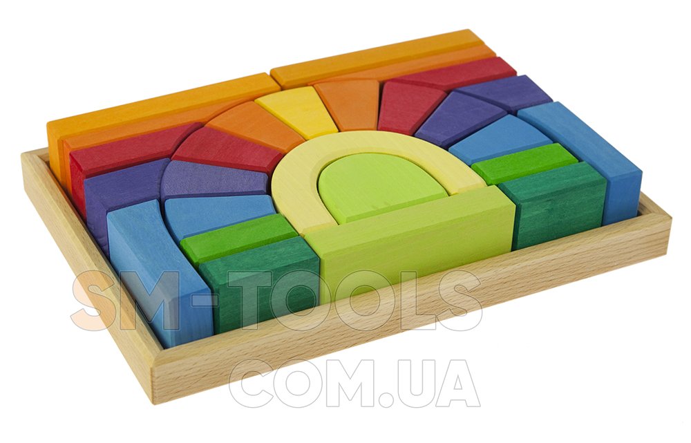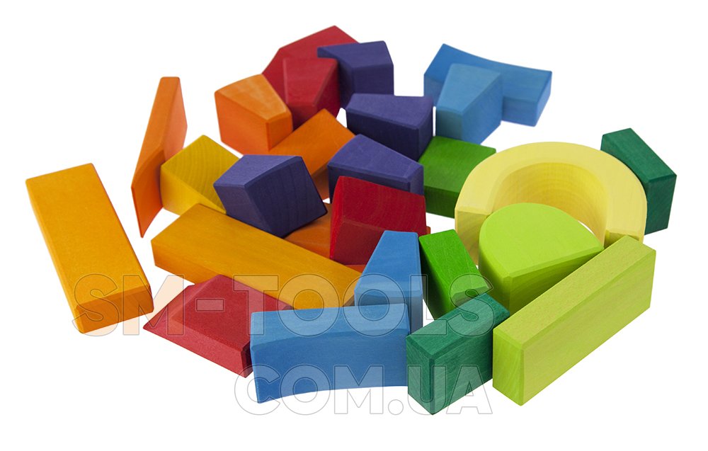 Деревянный конструктор научит детей строить мосты, башни, дома и другие конструкции, поскольку детали в наборе имеют разные формы, что позволит детям развивать воображение. Исключив из конструктора детали под аркой – образуется мост с проходом. Такую конструкцию можно использовать в повседневных сюжетно-ролевых играх с использованием фигурок людей или маленьких автомобилей.