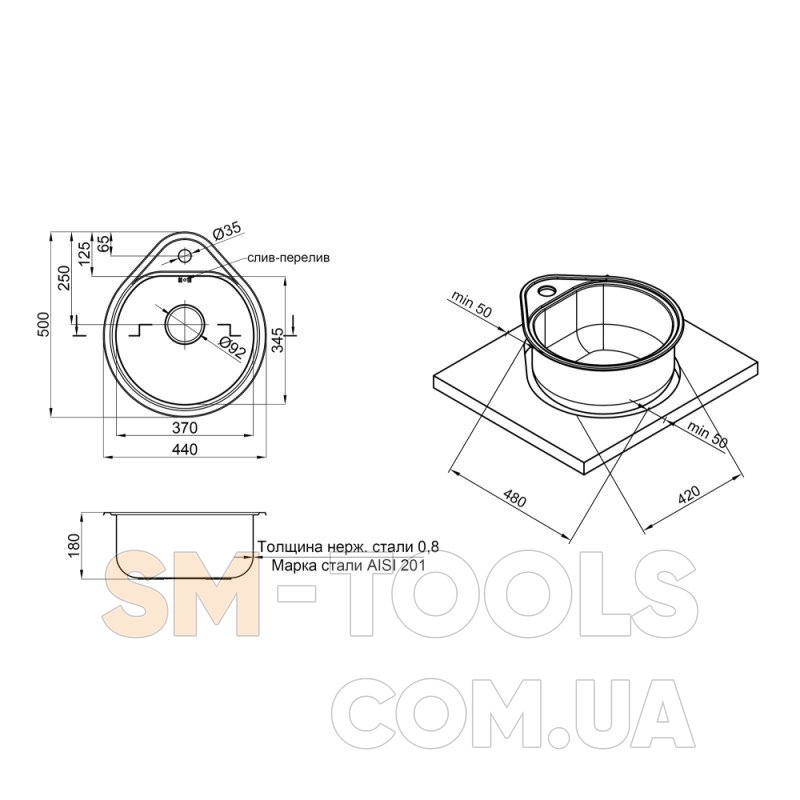 Опис Кухонна мийка Qtap 4450 Satin 0,8 мм (QT4450SAT08):
