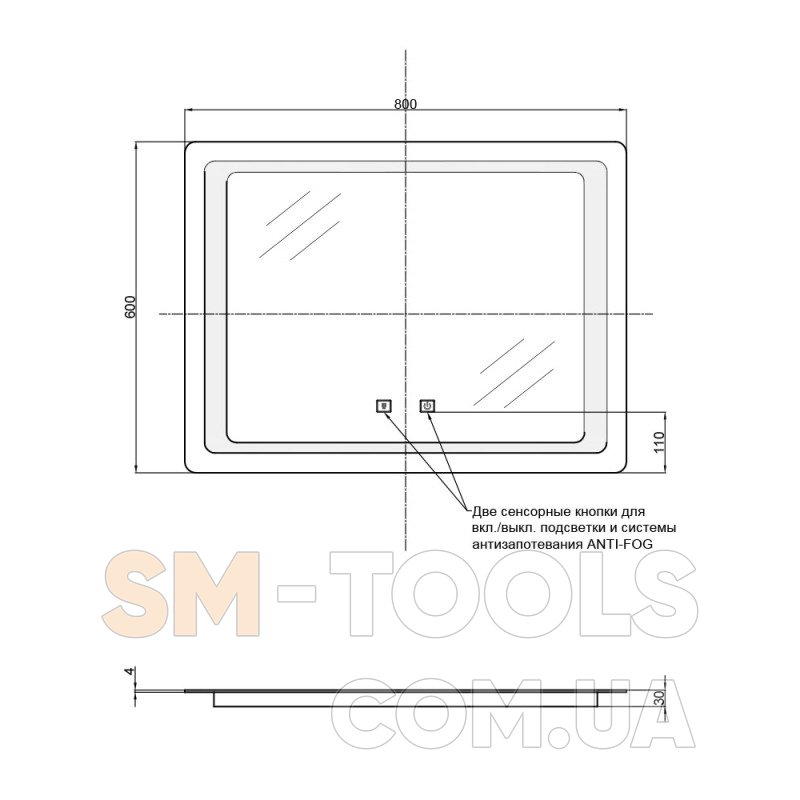 Характеристики Дзеркало Qtap Mideya з антизапотіванням 800х600 QT2078B9021W: