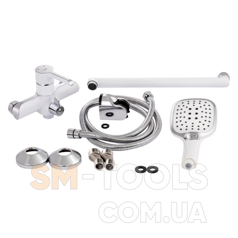Смеситель, лейка для ручного душа, душевой шланг, кронштейн для ручного душа, крепежные детали.