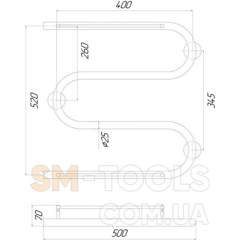 Полотенцесушитель электрический Lidz Snake shelf (CRM) 500x500 LE с полкой