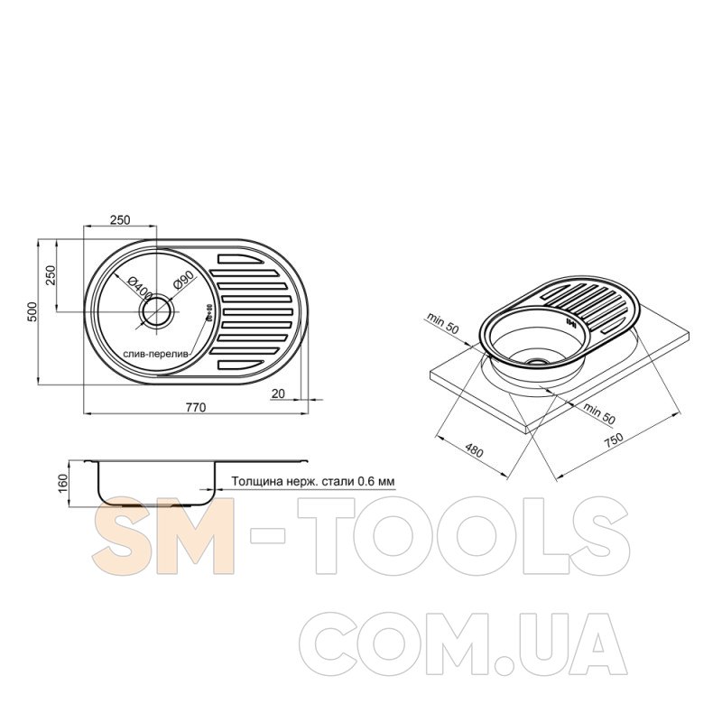 Характеристики Кухонна мийка Lidz 7750 Micro Decor 0,6 мм (LIDZ7750DEC06):