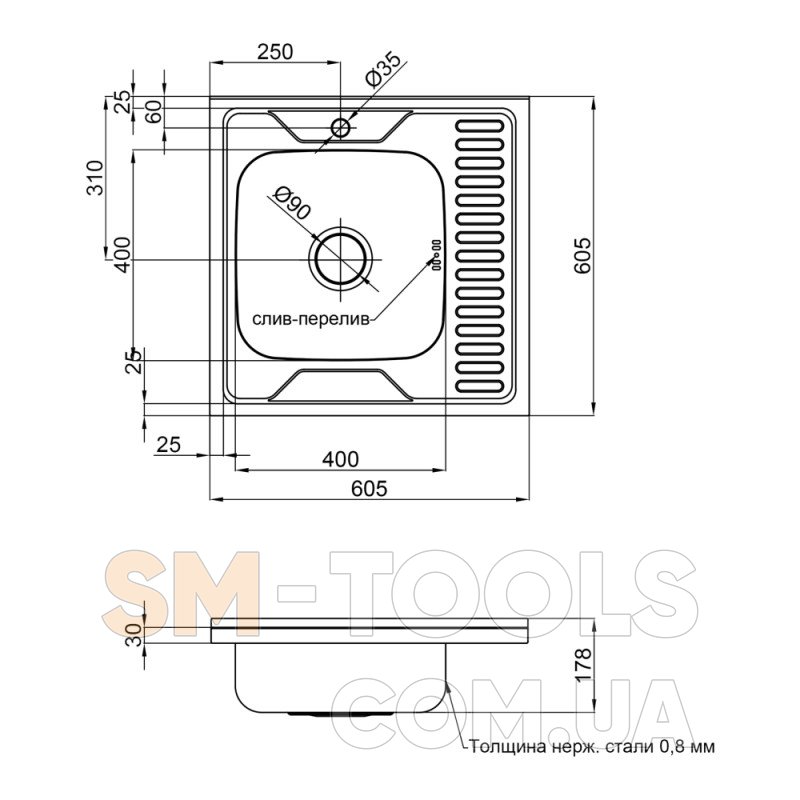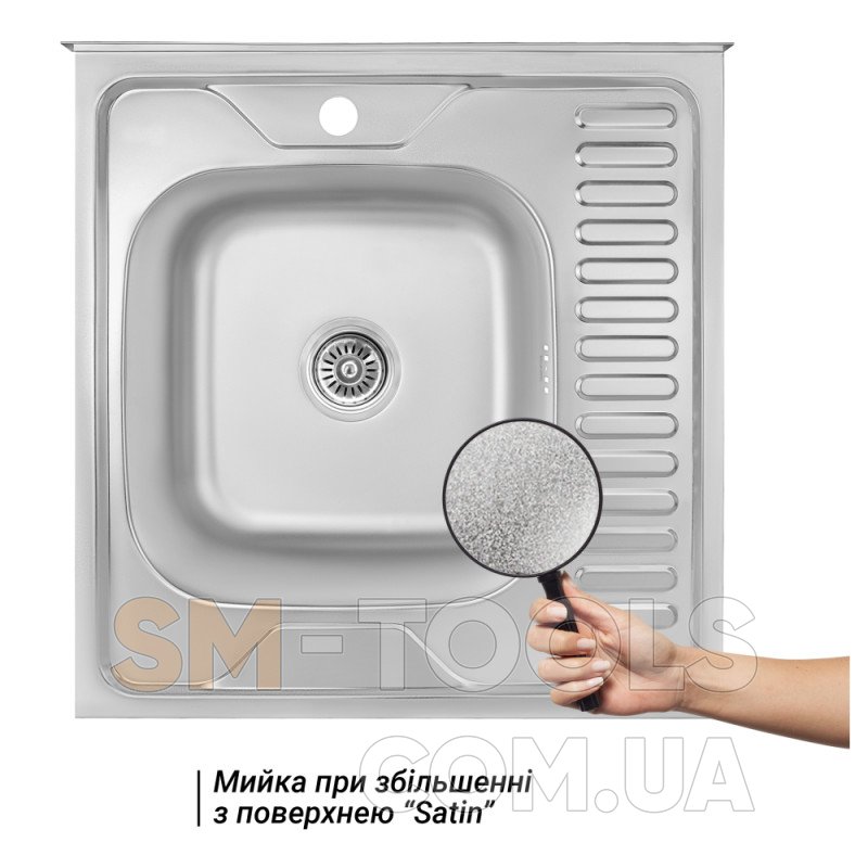 Характеристики Кухонна мийка Lidz 6060-L Satin 0,8 мм (LIDZ6060LRSAT8):