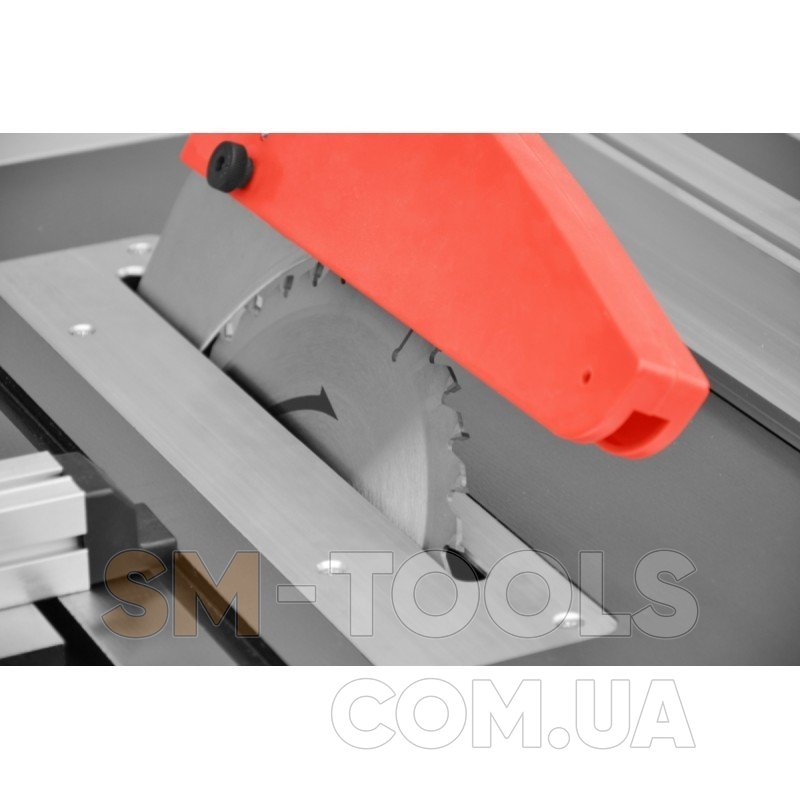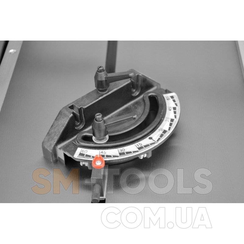 Основной рабочий стол циркулярной пилы по дереву Cormak TS 250 изготовлен из чугуна, а удлинение стола из оцинкованой стали надежно защищен от коррозии и имеет параллельный и угловой упор.