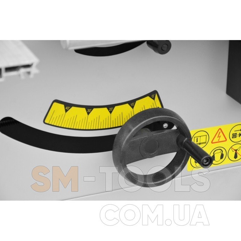 При помощи ручного маховика по шкале можно отрегулировать высоту пильного диска над рабочим столом и таким образом контролировать глубину пропила. Кроме того есть возможность изменять наклон пильного диска от 90° до 45°.