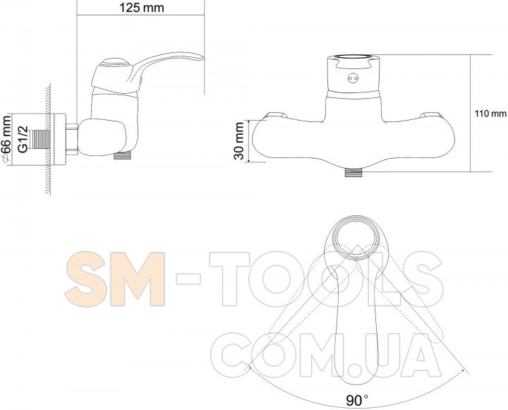 Змішувач комплектується круглою душовою лійкою з настінним тримачем і душовим шлангом у металевому обплетенні.