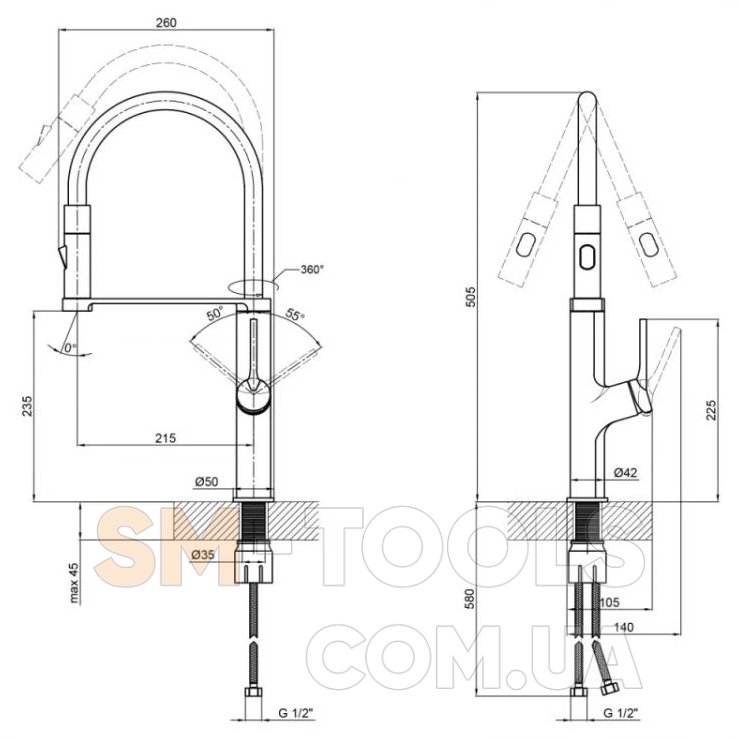 Смеситель для кухни с рефлекторным изливом Qtap Kuchyne 91105AC
