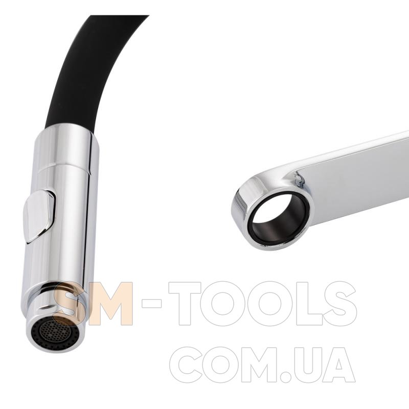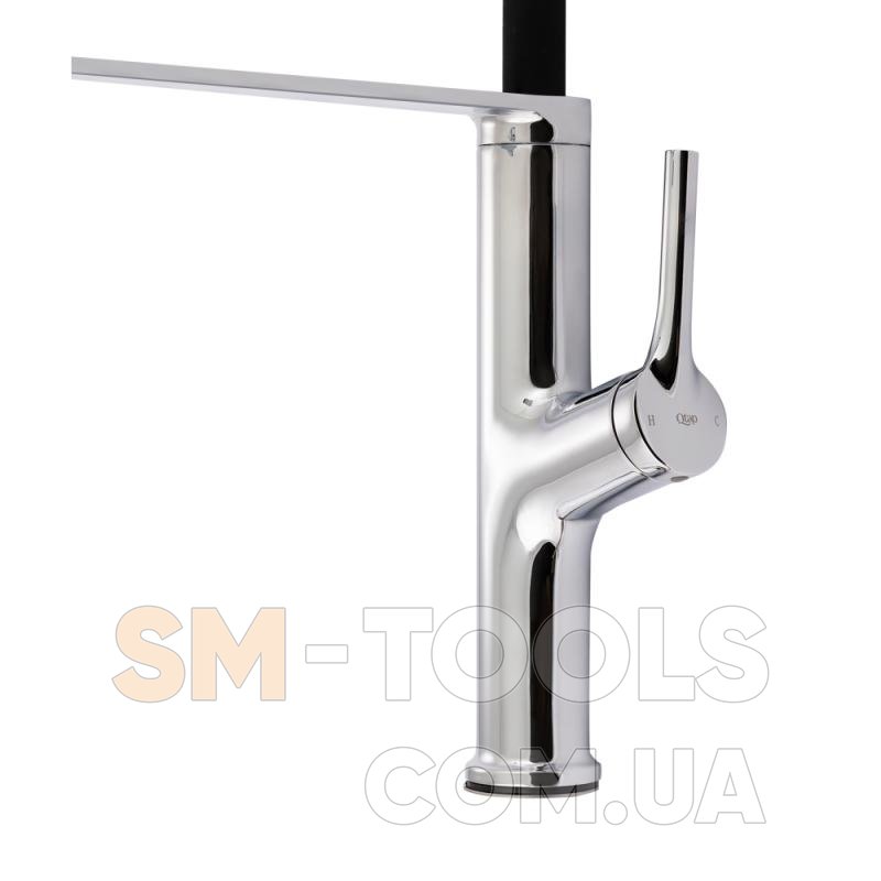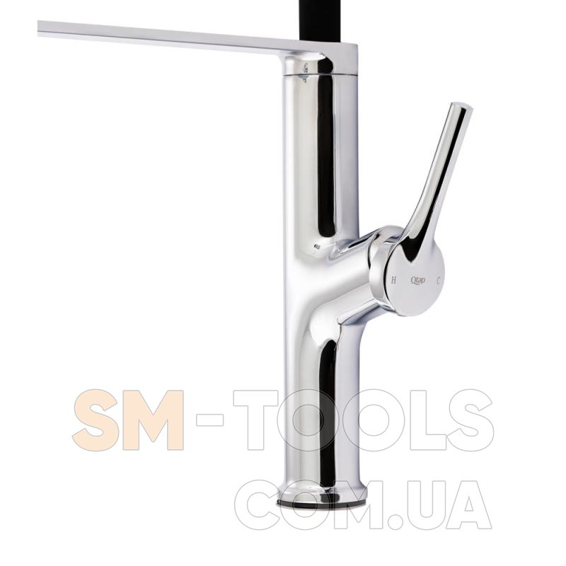 Смеситель для кухни Qtap Kuchyne 91105AC изготовлен из высококачественной пищевой латуни, не подверженной коррозии, устойчив к ударам и появлению трещин. Глянцевое хромированное покрытие не только повышает долговечность смесителя, но придает ему привлекательность. Смеситель имеет однорычажное управление, с помощью которого можно отрегулировать температуру и давление холодной и горячей воды. Изделие выполнено в современном стиле, с рефлекторным изливом черного цвета