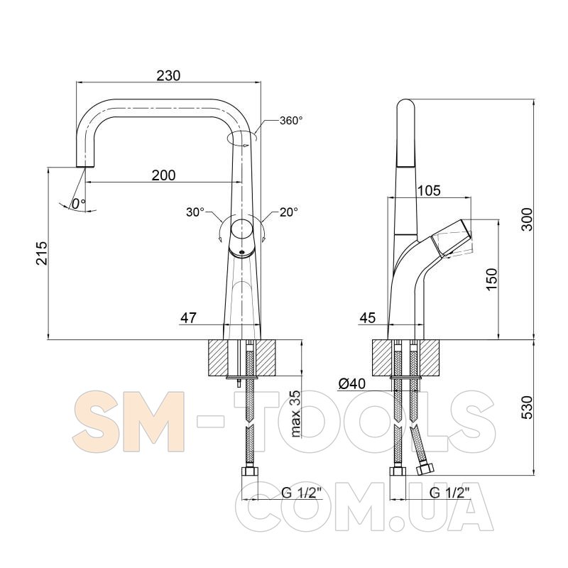 Высота излива, мм 215