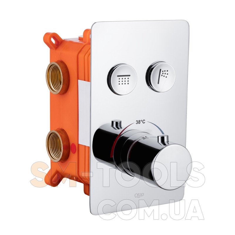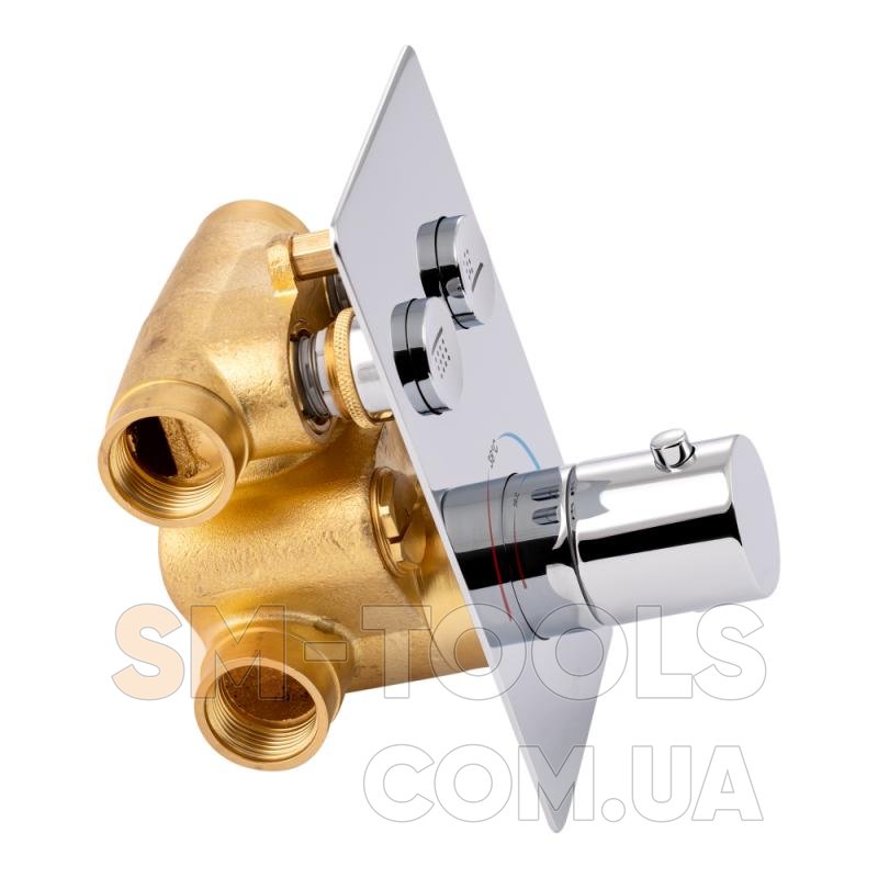 Змішувач термостатичний прихованого монтажу для душу Qtap Votice 6442T105NKC для двох споживачів - це зручне рішення для сучасної ванної кімнати. Міцна хромована поверхня збереже зовнішній вигляд змішувача на довгі роки. Змішувач виготовлено з високоякісної латуні, що не схильна до корозії. Завдяки вбудованому термостату встановлена температура води буде підтримуватися постійно, що зробить гігієнічні процедури ще більш комфортними