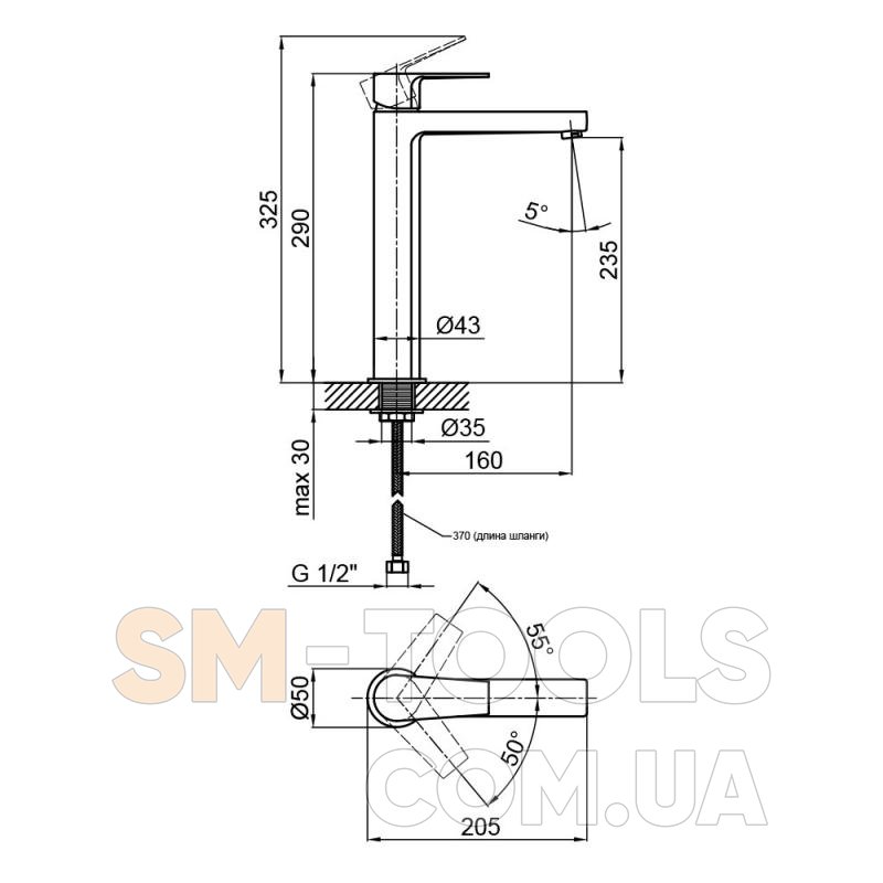 Висота виливу, мм 235