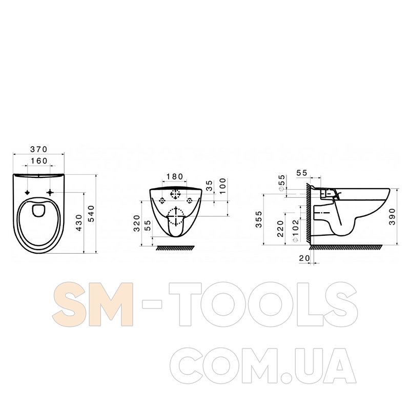 - крепежный материал: 2 болта-держателя для унитаза, крепление для керамики