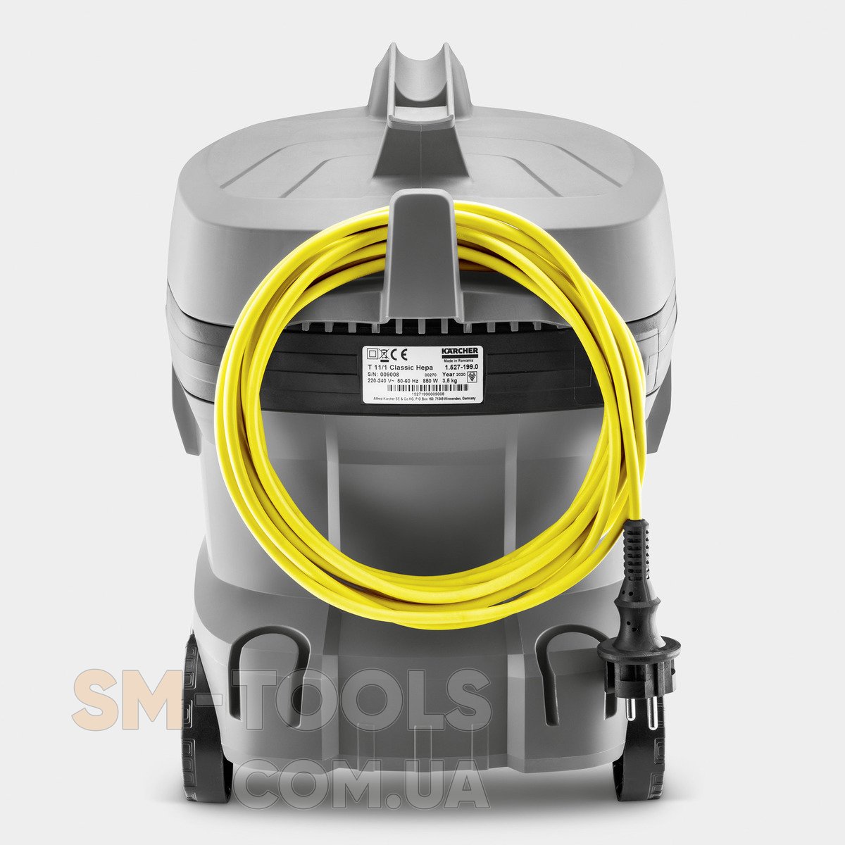 Прочный, надежный, чрезвычайно экономичный пылесос создает разрежение (вакуум) 235 мбар/23,5 кПа при мощности потребления всего 850 Вт и, таким образом, гарантирует отличные результаты всасывания с очень низким рабочим шумом всего 61 дБ(A). Это означает, что им можно пользоваться в любое время суток, в том числе в местах с повышенным требованием к уровню звука. При емкости 11 литров вес пылесоса составляет всего 4,2 кг. Имеет практичную ручку для переноски и эргономичную форму, устойчивую к опрокидыванию. T 11/1 Classic очень компактен, удобен при переноске и обеспечивает длительную работу без усталости. Такие аксессуары, как всасывающие трубки и насадка для пола, можно удобно разместить на пылесосе. В комплект входит фильтр-мешок из флиса.