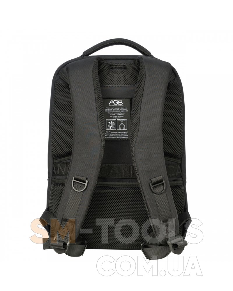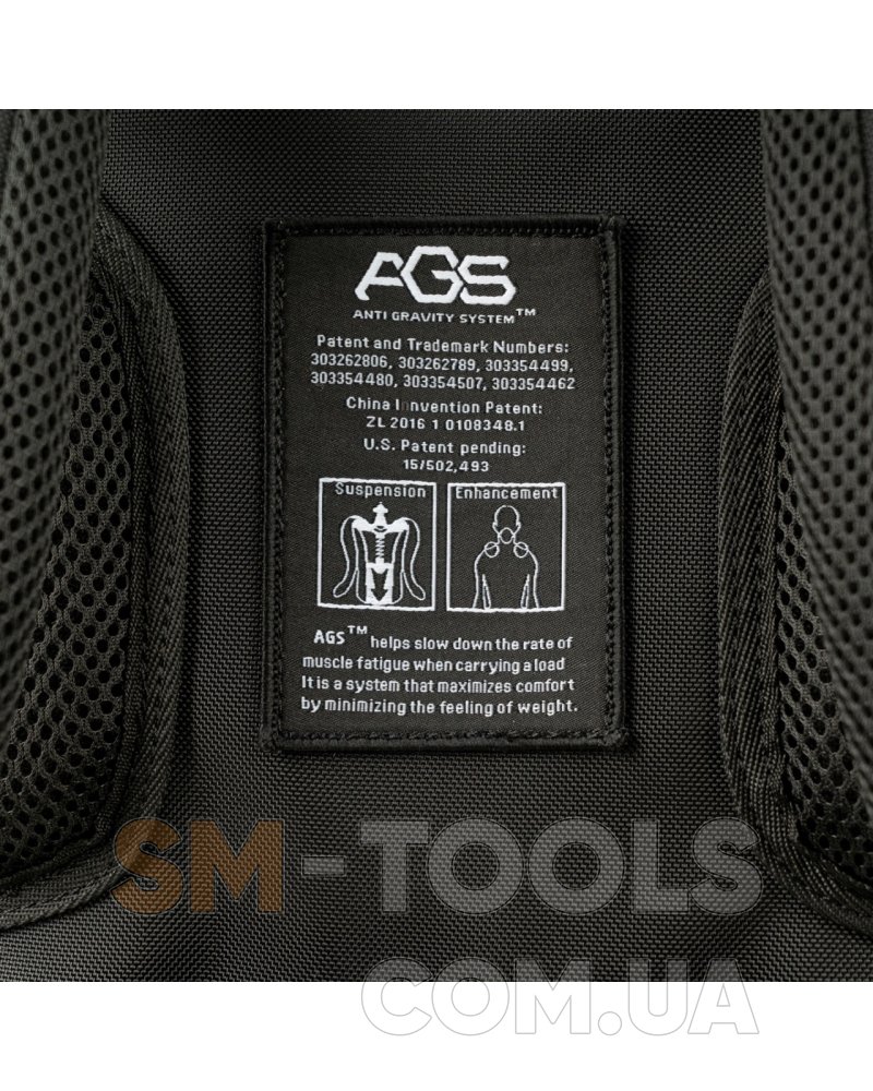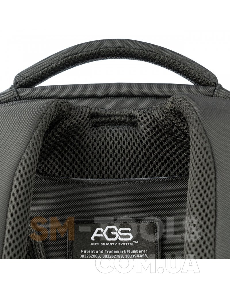 Крім системи підвіски AGS, в спинку вбудований ремінь-фікстатор, для розміщення рюкзака на телескопічною ручці чемодана, і потайну кишеню (антизлодій).