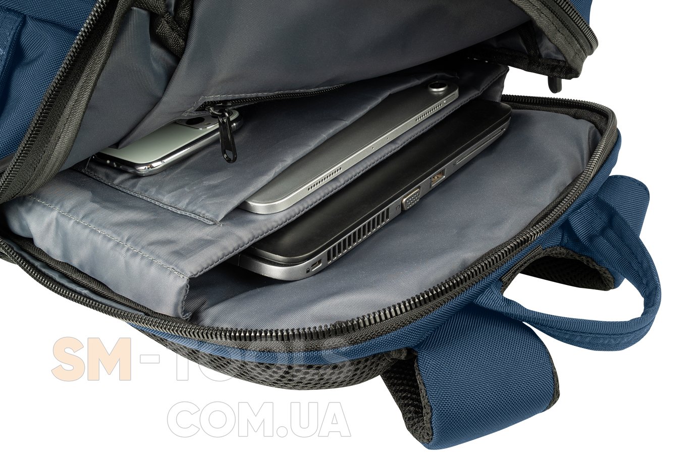 В глоловом отделении: два внутренних кармана с мягкими стенками и подкладкой для ноутбука и планшета.