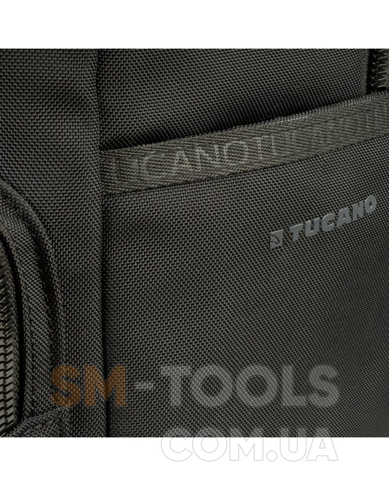 Боковые и задние потайные карманы декорированы сплошным рисунком с надписью "TUCANO" в тон основного материала.