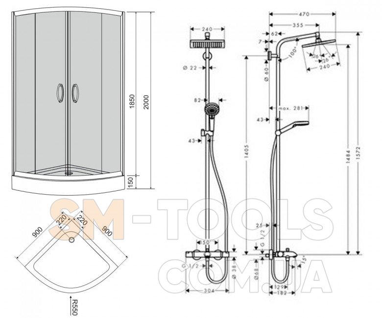 Комплект душевая кабина EGER Balaton 90x90+ душевая система Hansgrohe Crometta E 240 1jet Showerpipe 27298000