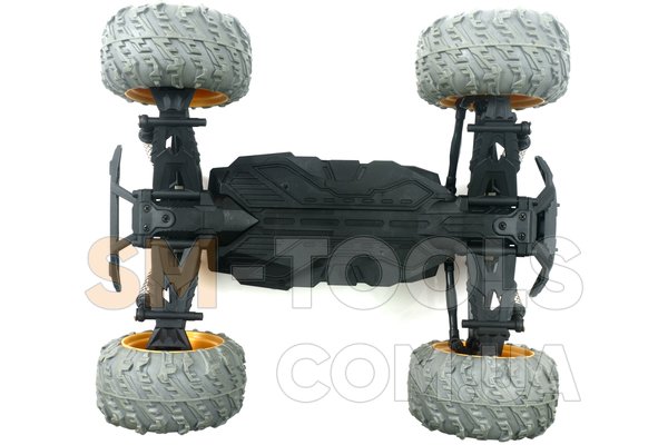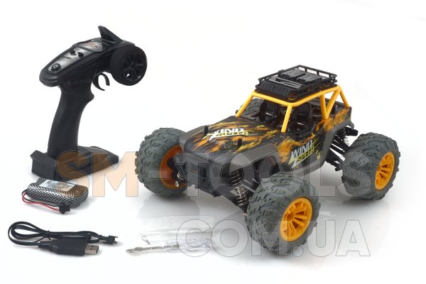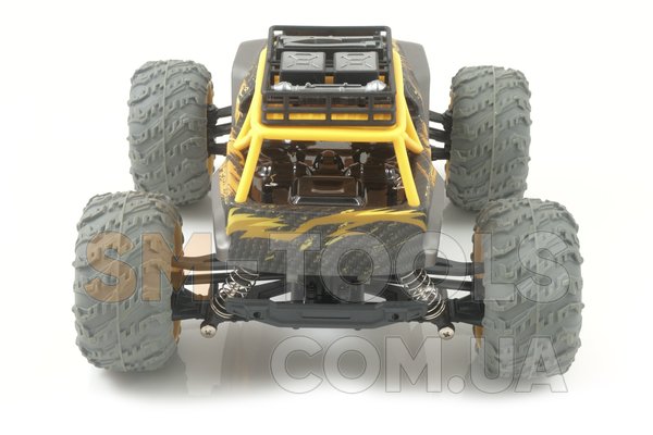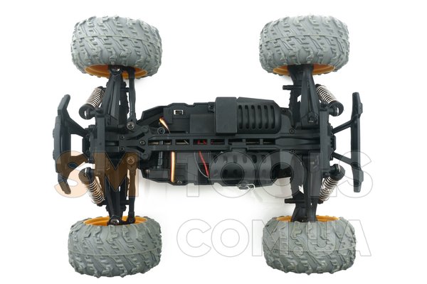 При развитой независимой рычажной подвеске с амортизаторами, автомодель имеет хорошую управляемость, сравнимую с автомобилями класса "хобби". Каркас и силовые элементы машинки сделаны настолько прочно, что большинство ударов ей просто не страшны! Также в машинку установлен мощный коллекторный электродвигатель 390-го модельного класса, который разгоняет её до 36 км/ч. С такой прытью можно не только уверенно рассекать по бездорожью, но и участвовать в гонках на грунтовых трассах! Качественные колёса из плотной резины с высоким сопротивлением к стиранию только помогут!