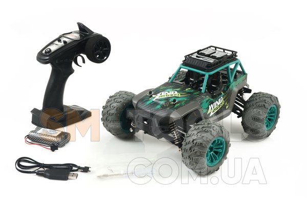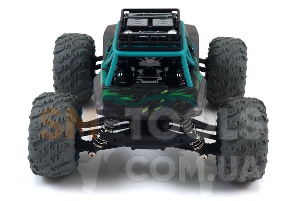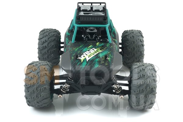При развитой независимой рычажной подвеске с амортизаторами, автомодель имеет хорошую управляемость, сравнимую с автомобилями класса "хобби". Каркас и силовые элементы машинки сделаны настолько прочно, что большинство ударов ей просто не страшны! Также в машинку установлен мощный коллекторный электродвигатель 390-го модельного класса, который разгоняет её до 36 км/ч. С такой прытью можно не только уверенно рассекать по бездорожью, но и участвовать в гонках на грунтовых трассах! Качественные колёса из плотной резины с высоким сопротивлением к стиранию только помогут!