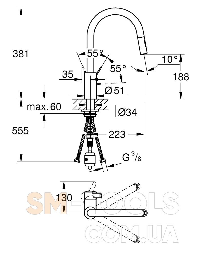 Описание Кухонная мойка Grohe Sink K800 31586SD0 со смесителем Grohe Eurosmart Cosmopolitan: